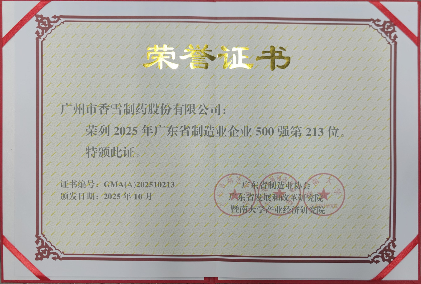 此次入选广东省制造业500强,是对香雪制药坚守制造初心、持续科技创新的充分肯定。展望未来,作为数字化中药引领者,公司将我们将秉持初心,携手行业伙伴,助力广东制造业高质量发展,为人类健康事业贡献力量!